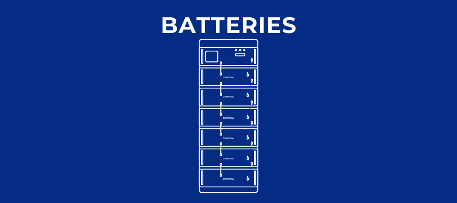 Solar batteries store DC energy for later use, supplying power during load shedding, at night, or when solar production is low. They integrate with the inverter to manage charge, discharge, and battery health.
